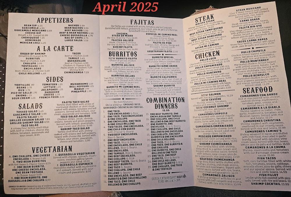 Mi Camino Real features a diverse menu filled with Mexican delights. From appetizers like bean dip and guacamole to entrées such as burritos and fajitas, there's something for everyone.