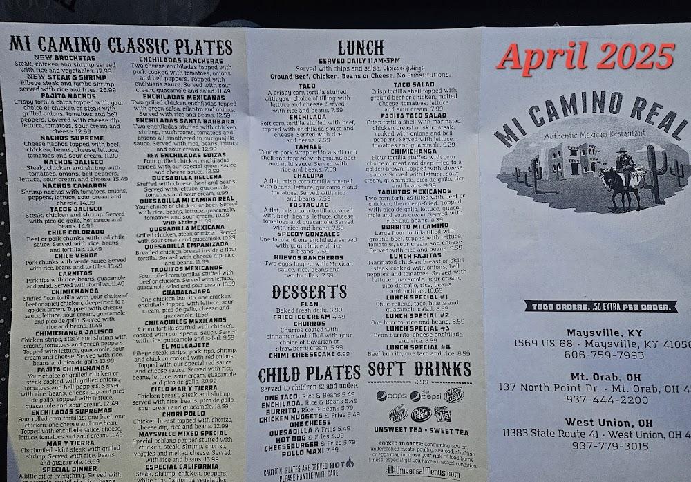 Welcome to Mi Camino Real, your go-to spot for authentic Mexican cuisine in Mt. Orab, OH! Located at 137 North Point Drive, we offer a delightful menu featuring traditional dishes, fast service, and a wide selection of craft beers and cocktails. Whether you’re joining us for a quick lunch, a cozy dinner, or a solo meal, our welcoming atmosphere and accessible amenities ensure a pleasant experience for everyone. Enjoy our delicious desserts, local specialties, and happy hour deals. Join us today for a taste of Mexico at Mi Camino Real, where great food and good times await!